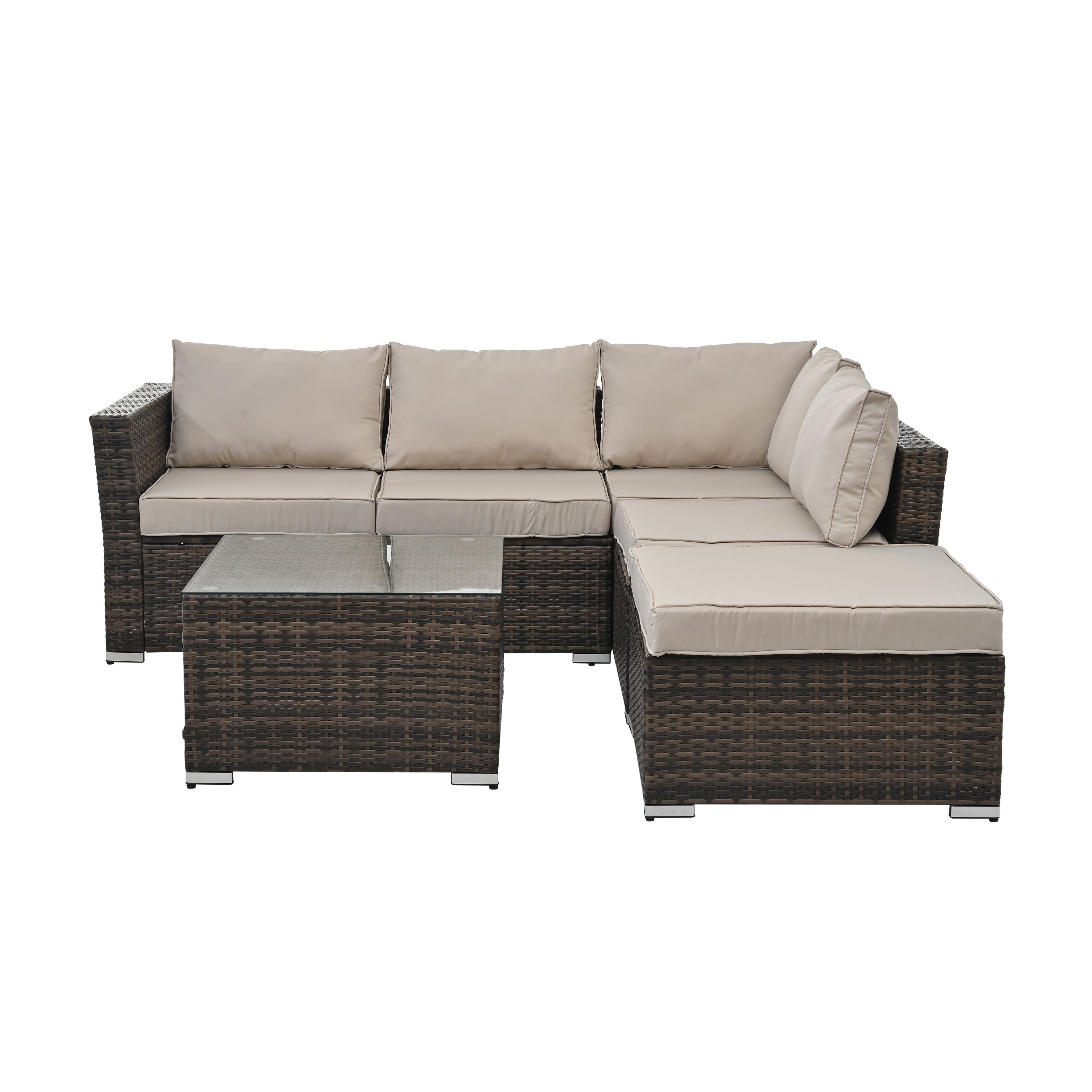 Patio Furniture, Outdoor Furniture, Seasonal PE Wicker Furniture, 4 Set Wicker Furniture With Tempered Glass Coffee Table
